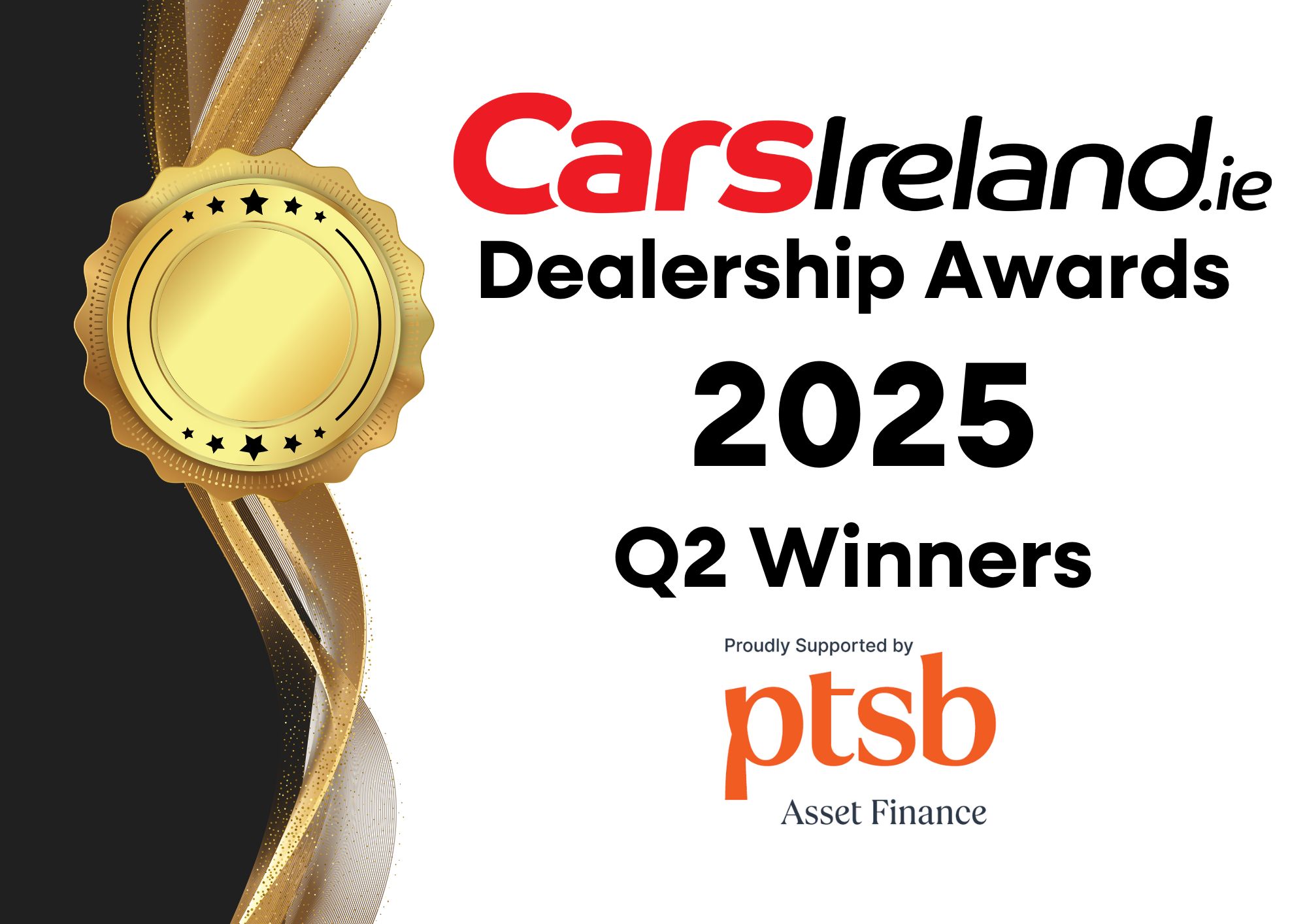The CarsIreland Dealership Awards shine a spotlight on outstanding achievement in online automotive marketing by car dealers nationwide. We're thrilled to unveil our first set of Quarter 2 winners for 2025, proudly supported by PTSB Asset Finance – recognising those leading the charge in innovation, customer engagement, and digital performance.