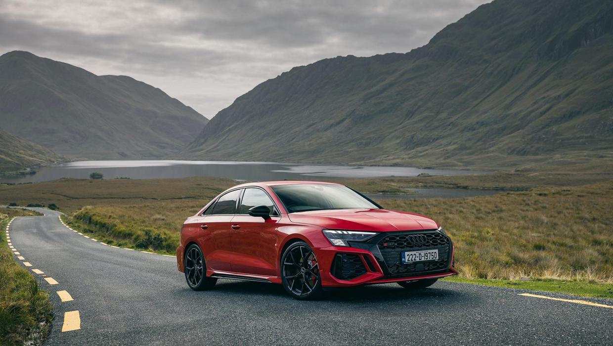 Audi RS3 4dr saloon: 2.5-litre 5cyl, 400bhp, S-tronic 7spd, quattro all-wheel drive, 0-100kmh in 3.8 seconds; top speed 250kmh. Retail price €93,805; options €12,891, paint €1,349. Total price €108,045. Road tax from €1,250, official 9litres/100km, red/black upholstery, range of safety/comfort elements. Optional extras include: Bang & Olufsen sound system, digital Matrix headlights, Nappa leather, heated front seats, rear-view camera, RS sports exhaust system, 19ins Sport wheels.